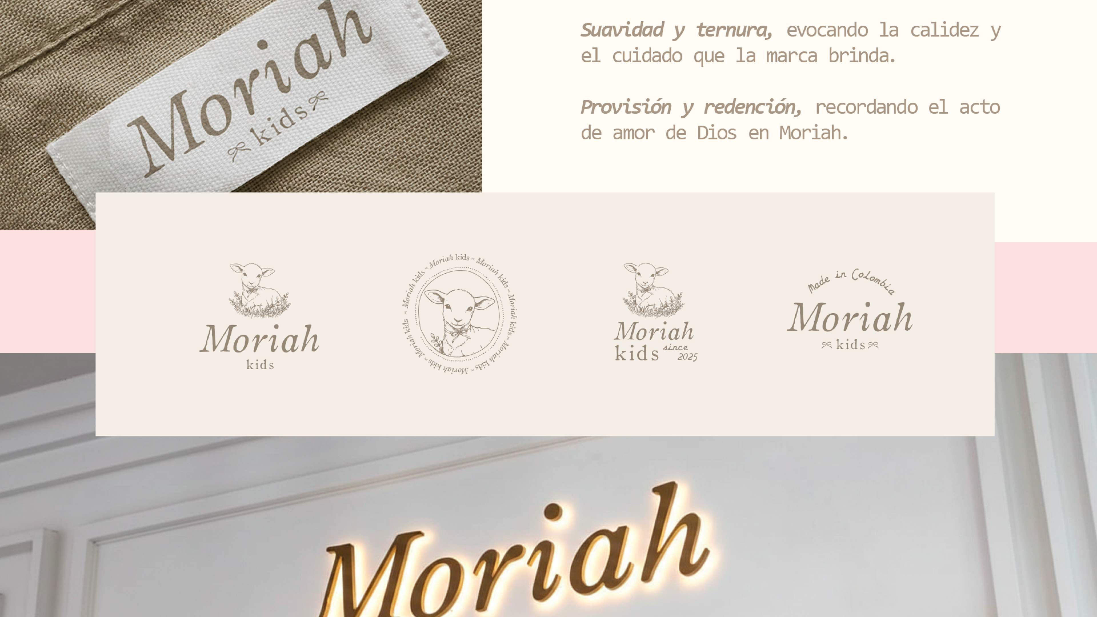 Así construimos una marca que representa el cuidado, la provisión y la ternura de Dios. Combinamos elementos elegantes y sutiles con detalles que harán de este proyecto un sello único en la vida de los más pequeños. Basado en Génesis 22: 12-18